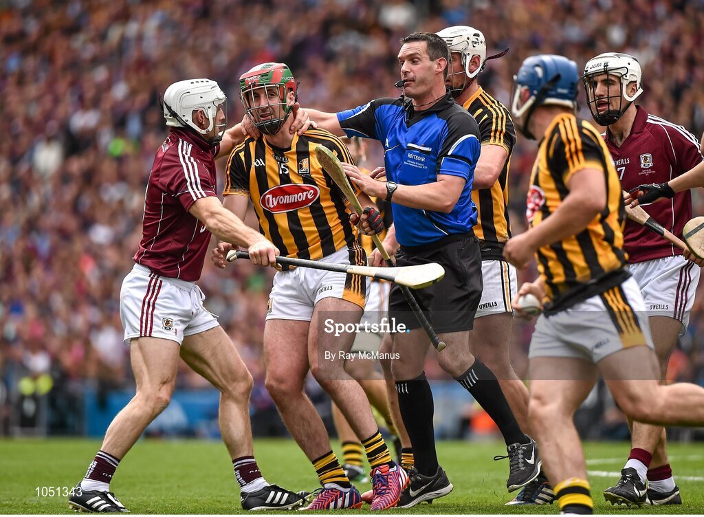 6 September 2015; Referee James Owens moves in to seperate players as the jostle early in the first half. GAA Hurling All-Ireland Senior Championship Final, Kilkenny v Galway, Croke Park, Dublin. Picture credit: Ray McManus / SPORTSFILE