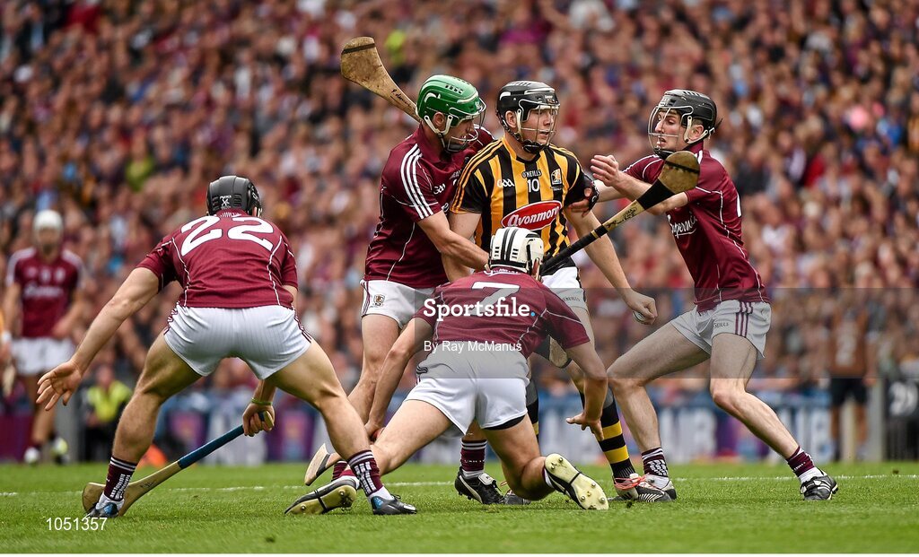 6 September 2015; Walter Walsh, Kilkenny, under pressure from Galway players, from left, David Collins, Daithi Burke, David Burke and Padraig Mannion. GAA Hurling All-Ireland Senior Championship Final, Kilkenny v Galway, Croke Park, Dublin. Picture credit: Ray McManus / SPORTSFILE