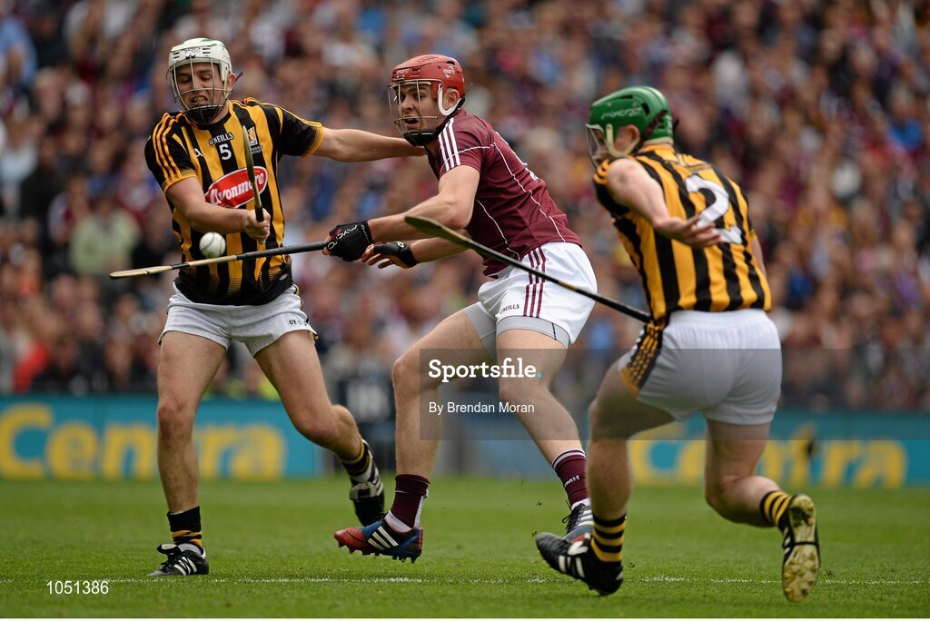 6 September 2015; Jonathan Glynn, Galway, in action against Padraig Walsh and Paul Murphy, Kilkenny. GAA Hurling All-Ireland Senior Championship Final, Kilkenny v Galway, Croke Park, Dublin. Picture credit: Brendan Moran / SPORTSFILE
