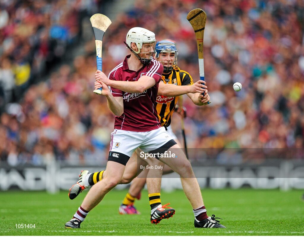 6 September 2015; John Hanbury, Galway, in action against Ger Aylward, Kilkenny. GAA Hurling All-Ireland Senior Championship Final, Kilkenny v Galway, Croke Park, Dublin. Picture credit: Seb Daly / SPORTSFILE