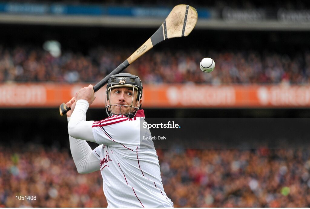 6 September 2015; Colm Callanan, Galway, hits the ball downfield. GAA Hurling All-Ireland Senior Championship Final, Kilkenny v Galway, Croke Park, Dublin. Picture credit: Seb Daly / SPORTSFILE