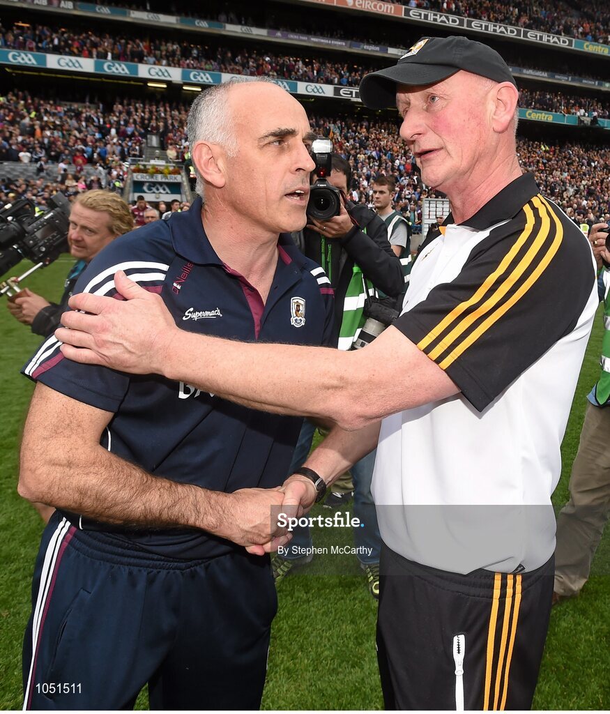 6 September 2015; Kilkenny manager Brian Cody and Galway manager Anthony Cunningham at the end of the game. GAA Hurling All-Ireland Senior Championship Final, Kilkenny v Galway, Croke Park, Dublin. Picture credit: Stephen McCarthy / SPORTSFILE
