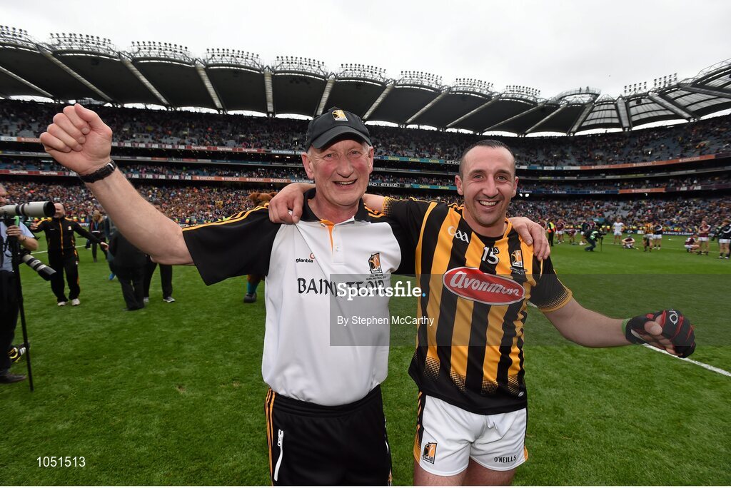 6 September 2015; Kilkenny manager Brian Cody celebrates with Eoin Larkin after the final whistle. GAA Hurling All-Ireland Senior Championship Final, Kilkenny v Galway, Croke Park, Dublin. Picture credit: Stephen McCarthy / SPORTSFILE