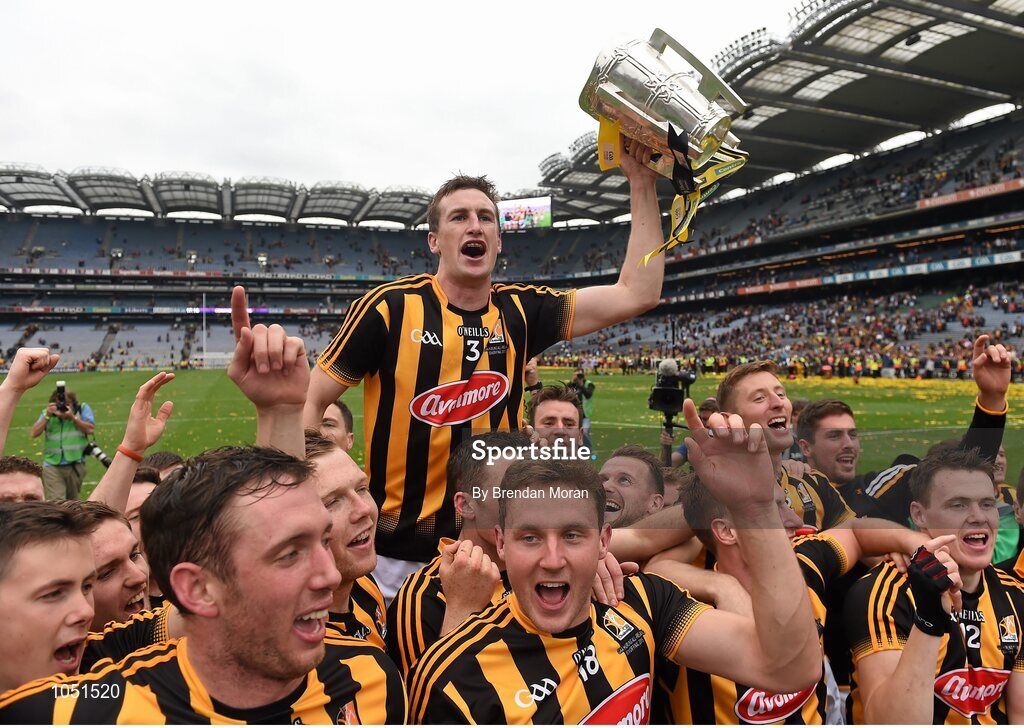 6 September 2015; Kilkenny captain Joey Holden celebrates with the cup and his team-mates after the game. GAA Hurling All-Ireland Senior Championship Final, Kilkenny v Galway, Croke Park, Dublin. Picture credit: Brendan Moran / SPORTSFILE