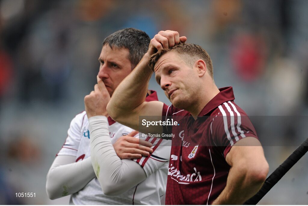 6 September 2015; Dejected Galway players, Andrew Smith, right, and goalkeeper Colm Callanan after the game. GAA Hurling All-Ireland Senior Championship Final, Kilkenny v Galway, Croke Park, Dublin. Picture credit: Tomás Greally / SPORTSFILE