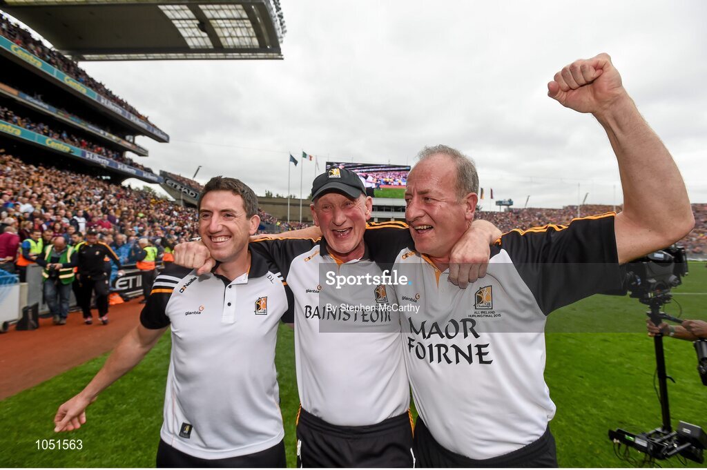 6 September 2015; Kilkenny manager Brian Cody celebrates with his selectors Derek Lyng, left, and Michael Dempsey, right, following their side's victory. GAA Hurling All-Ireland Senior Championship Final, Kilkenny v Galway. Croke Park, Dublin. Picture credit: Stephen McCarthy / SPORTSFILE