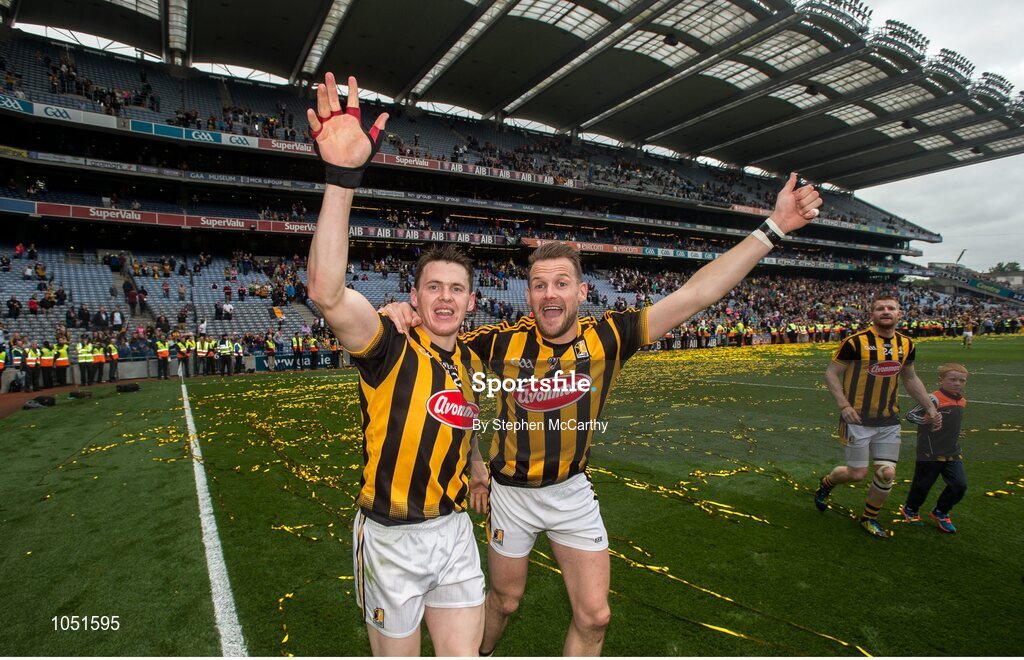 6 September 2015; Kilkenny's TJ Reid and Jackie Tyrrell celebrate following their victory. GAA Hurling All-Ireland Senior Championship Final, Kilkenny v Galway. Croke Park, Dublin. Picture credit: Stephen McCarthy / SPORTSFILE