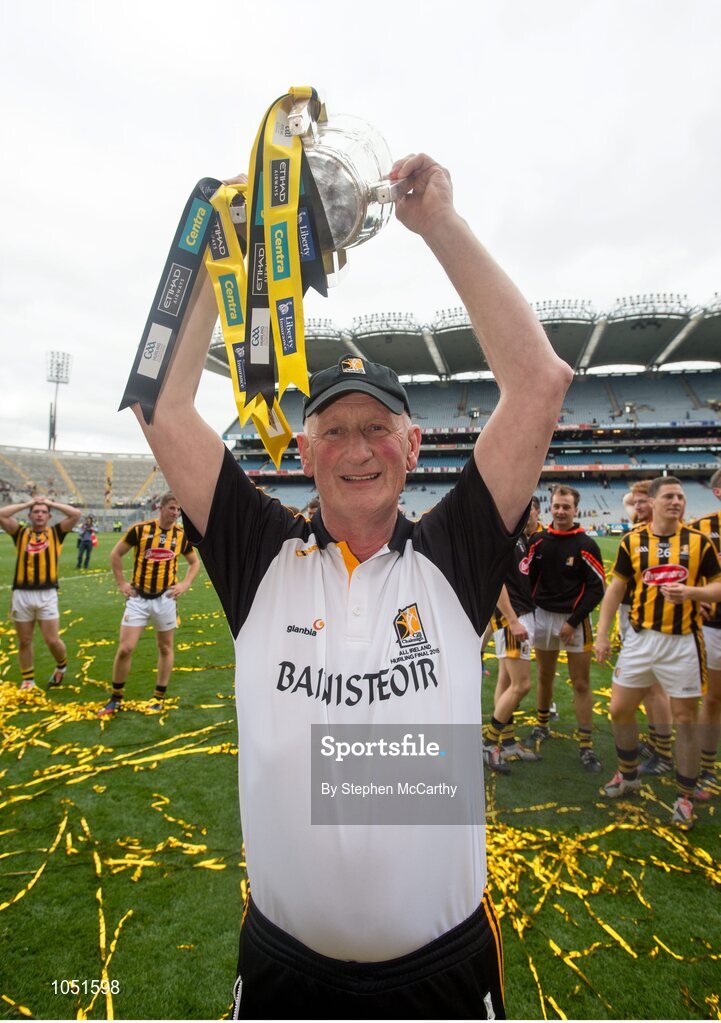 6 September 2015; Kilkenny manager Brian Cody lifts the Liam MacCarthy Cup following his side's victory. GAA Hurling All-Ireland Senior Championship Final, Kilkenny v Galway. Croke Park, Dublin. Picture credit: Stephen McCarthy / SPORTSFILE