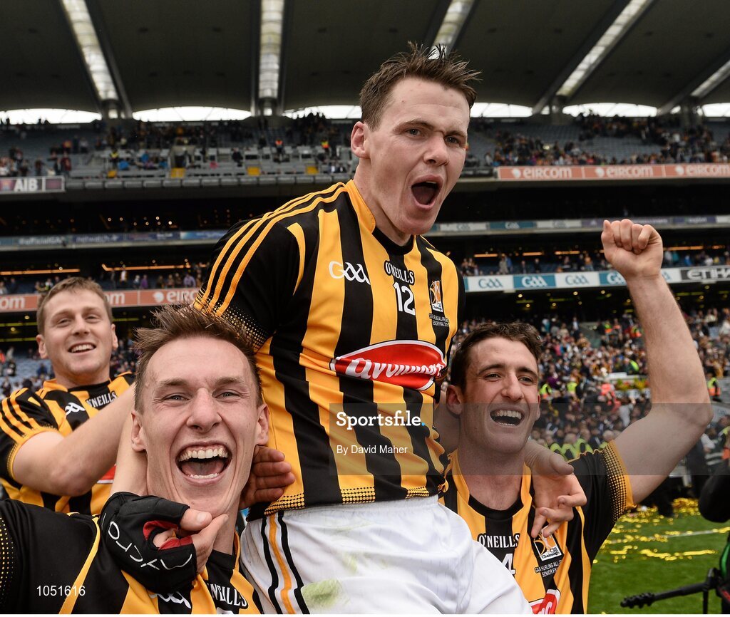 6 September 2015; Kilkenny players, from left, Cillian Buckley, TJ Reid, and Colin Fennelly celebrate at the end of the game. GAA Hurling All-Ireland Senior Championship Final, Kilkenny v Galway, Croke Park, Dublin. Picture credit: David Maher / SPORTSFILE
