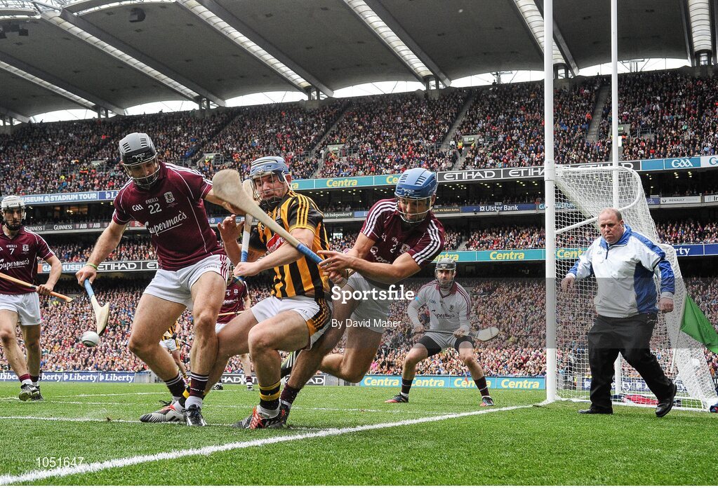 6 September 2015; Johnny Coen and David Collins, Galway, in action against Ger Aylward, Kilkenny. GAA Hurling All-Ireland Senior Championship Final, Kilkenny v Galway, Croke Park, Dublin. Picture credit: David Maher / SPORTSFILE