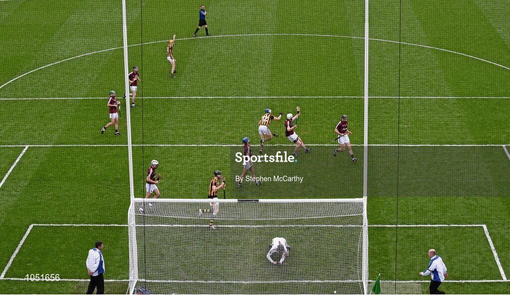 6 September 2015; TJ Reid, Kilkenny, 12, turns away to celebrate after scoring his side's goal past Colm Callanan, Galway. GAA Hurling All-Ireland Senior Championship Final, Kilkenny v Galway. Croke Park, Dublin. Picture credit: Stephen McCarthy / SPORTSFILE