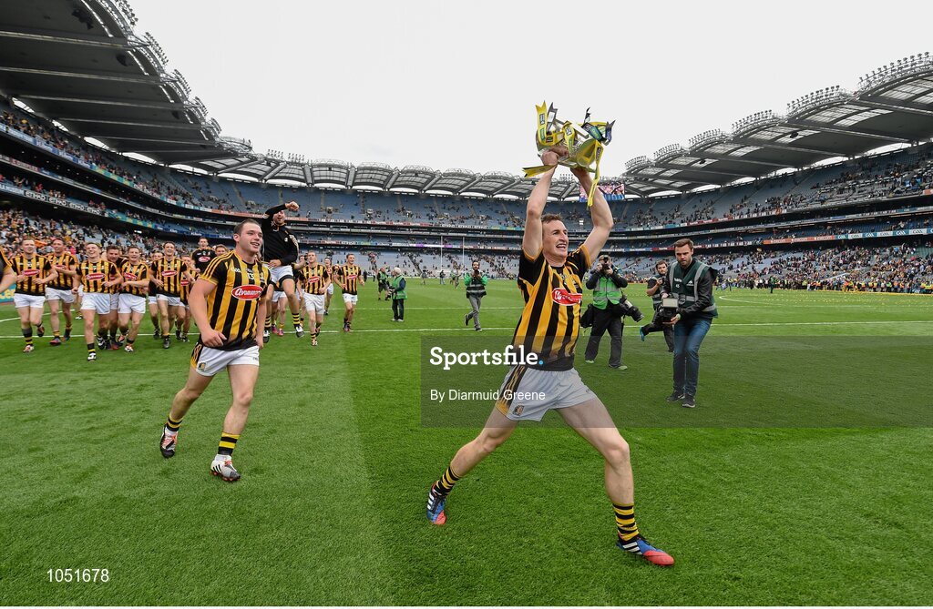 6 September 2015; Kilkenny captain Joey Holden celebrates with the Liam MacCarthy cup after victory over Galway. GAA Hurling All-Ireland Senior Championship Final, Kilkenny v Galway, Croke Park, Dublin. Picture credit: Diarmuid Greene / SPORTSFILE
