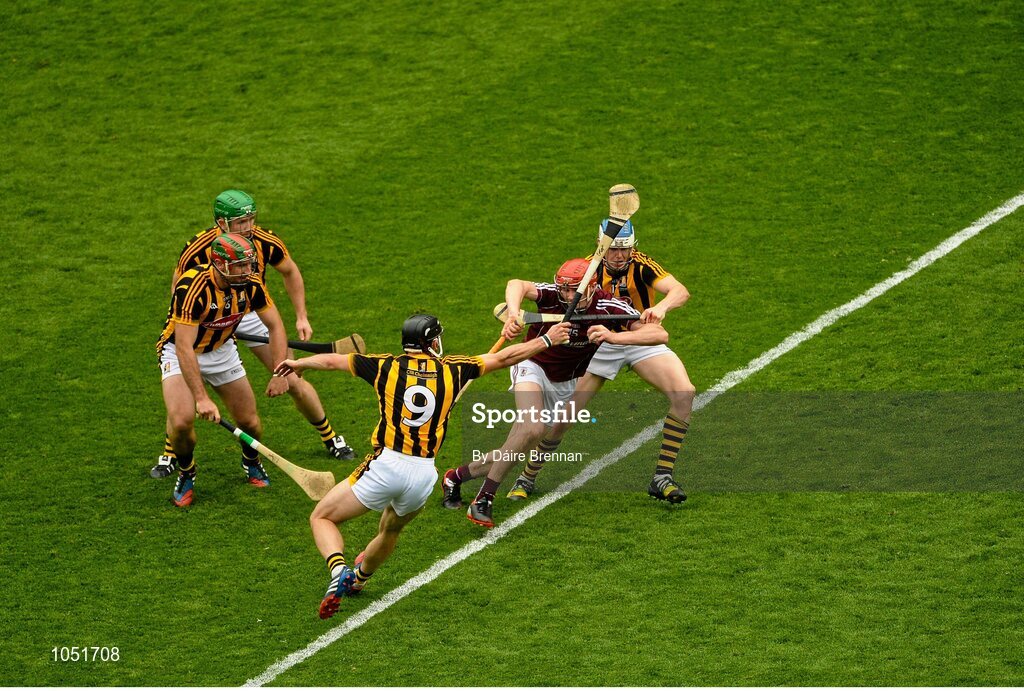 6 September 2015; Cathal Mannion, Galway, in action against Kilkenny players, left to right, Kieran Joyce, Paul Murphy, Conor Fogarty, and TJ Reid. GAA Hurling All-Ireland Senior Championship Final, Kilkenny v Galway, Croke Park, Dublin.Picture credit: Dáire Brennan / SPORTSFILE