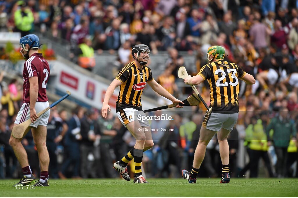 6 September 2015; Kilkenny's Walter Walsh, left, and John Power celebrate at the final whistle after victory over Galway. GAA Hurling All-Ireland Senior Championship Final, Kilkenny v Galway, Croke Park, Dublin. Picture credit: Diarmuid Greene / SPORTSFILE