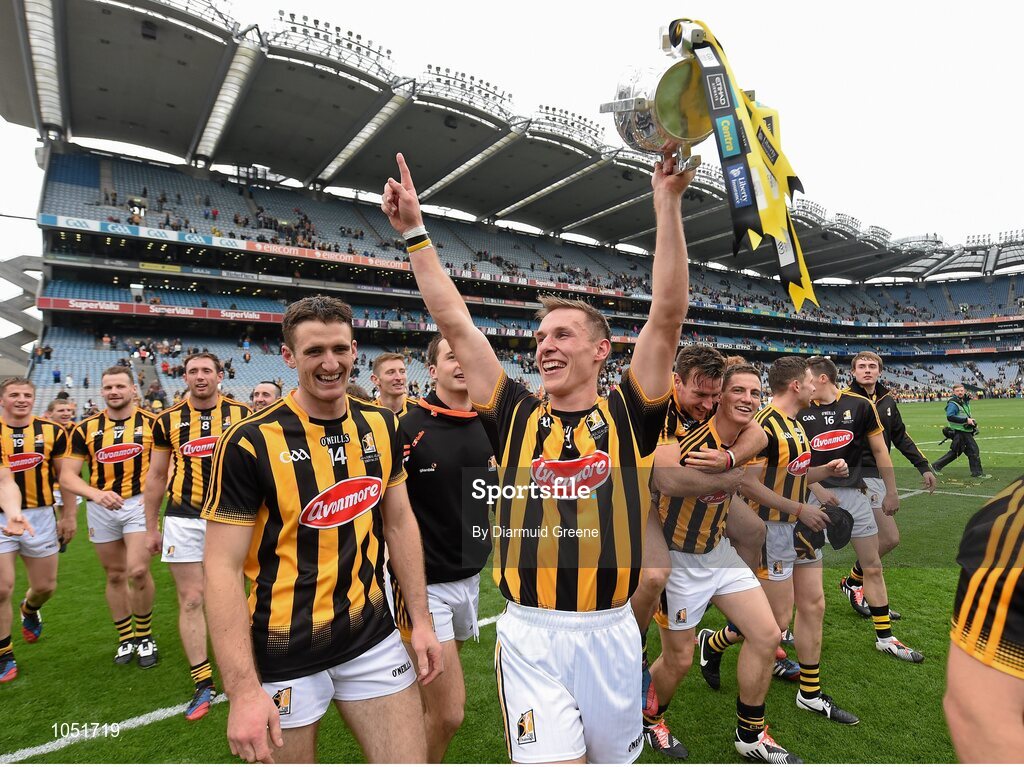 6 September 2015; Kilkenny's Cillian Buckley, right, and Colin Fennelly celebrate with the Liam MacCarthy cup after victory over Galway. GAA Hurling All-Ireland Senior Championship Final, Kilkenny v Galway, Croke Park, Dublin. Picture credit: Diarmuid Greene / SPORTSFILE