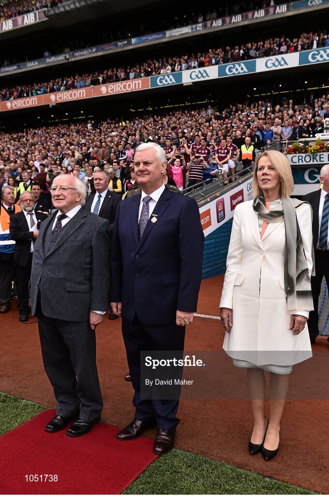6 September 2015; The President of Ireland Michael D. Higgins and Uachtarán Chumann Lúthchleas Aogán Ó Fearghail, with his wife Frances, before the start of the game. GAA Hurling All-Ireland Senior Championship Final, Kilkenny v Galway, Croke Park, Dublin. Picture credit: David Maher / SPORTSFILE