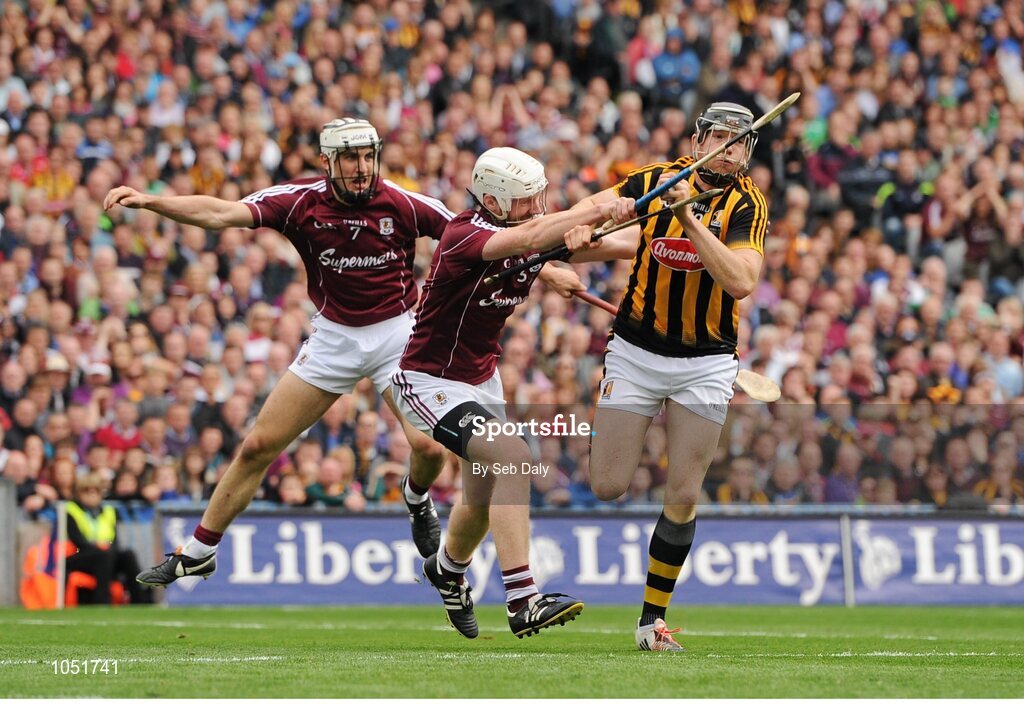 6 September 2015; Walter Walsh, Kilkenny, in action against John Hanbury, left, and Daithi Burke, right, Galway. GAA Hurling All-Ireland Senior Championship Final, Kilkenny v Galway, Croke Park, Dublin. Picture credit: Seb Daly / SPORTSFILE