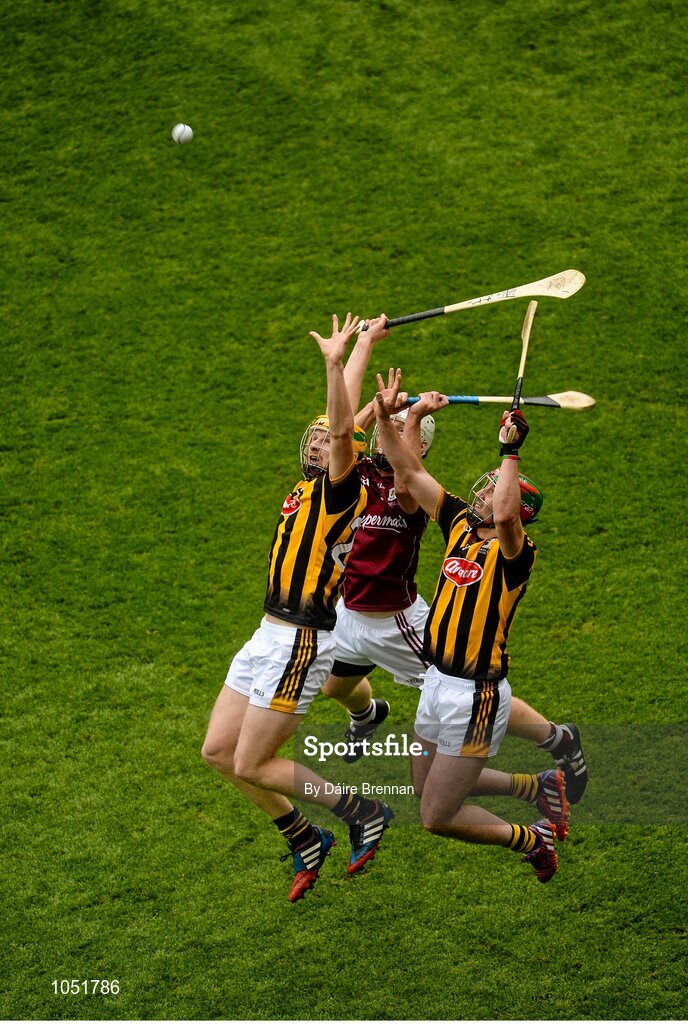 6 September 2015; Richie Power, left, and Eoin Larkin, Kilkenny, in action against John Hanbury, Galway. GAA Hurling All-Ireland Senior Championship Final, Kilkenny v Galway, Croke Park, Dublin.Picture credit: Dáire Brennan / SPORTSFILE
