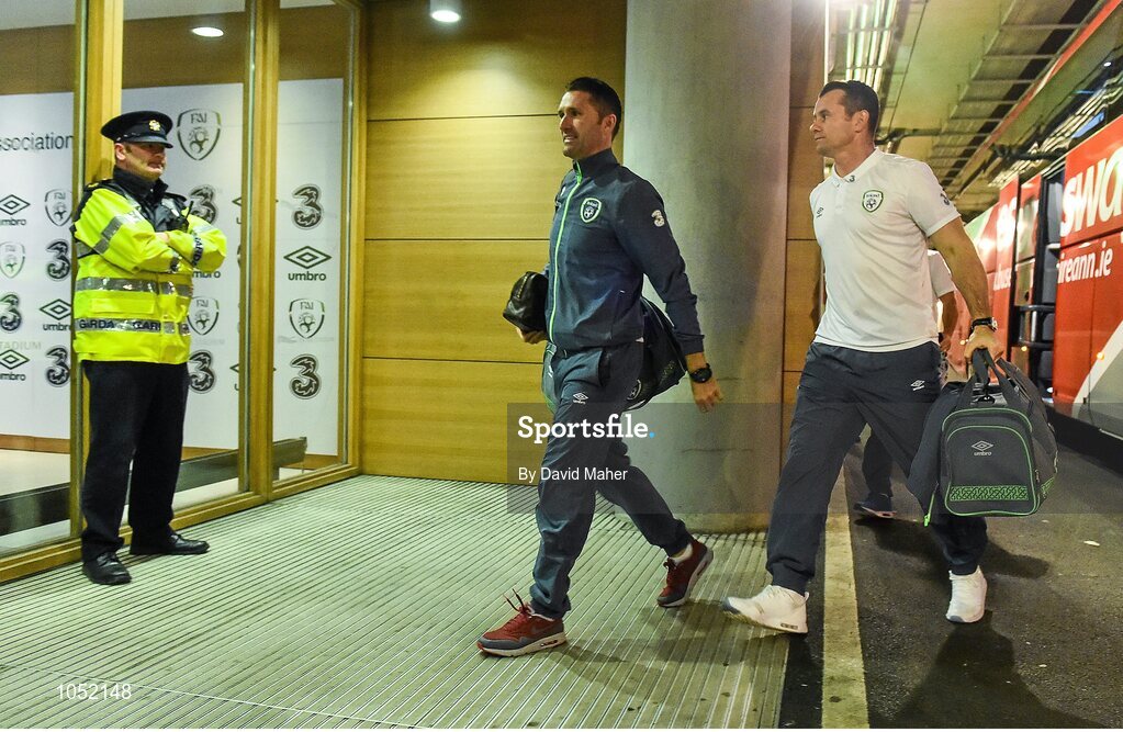 7 September 2015; Republic of Ireland's Robbie Keane and Shay Given, right, arrive ahead of the game. UEFA EURO 2016 Championship Qualifier, Group D, Republic of Ireland v Georgia, Aviva Stadium, Lansdowne Road, Dublin. Picture credit: David Maher / SPORTSFILE