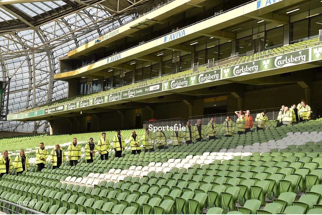 7 September 2015; Stewards check the seats of Aviva Stadium before the match. UEFA EURO 2016 Championship Qualifier, Group D, Republic of Ireland v Georgia, Aviva Stadium, Lansdowne Road, Dublin. Picture credit: Cody Glenn / SPORTSFILE