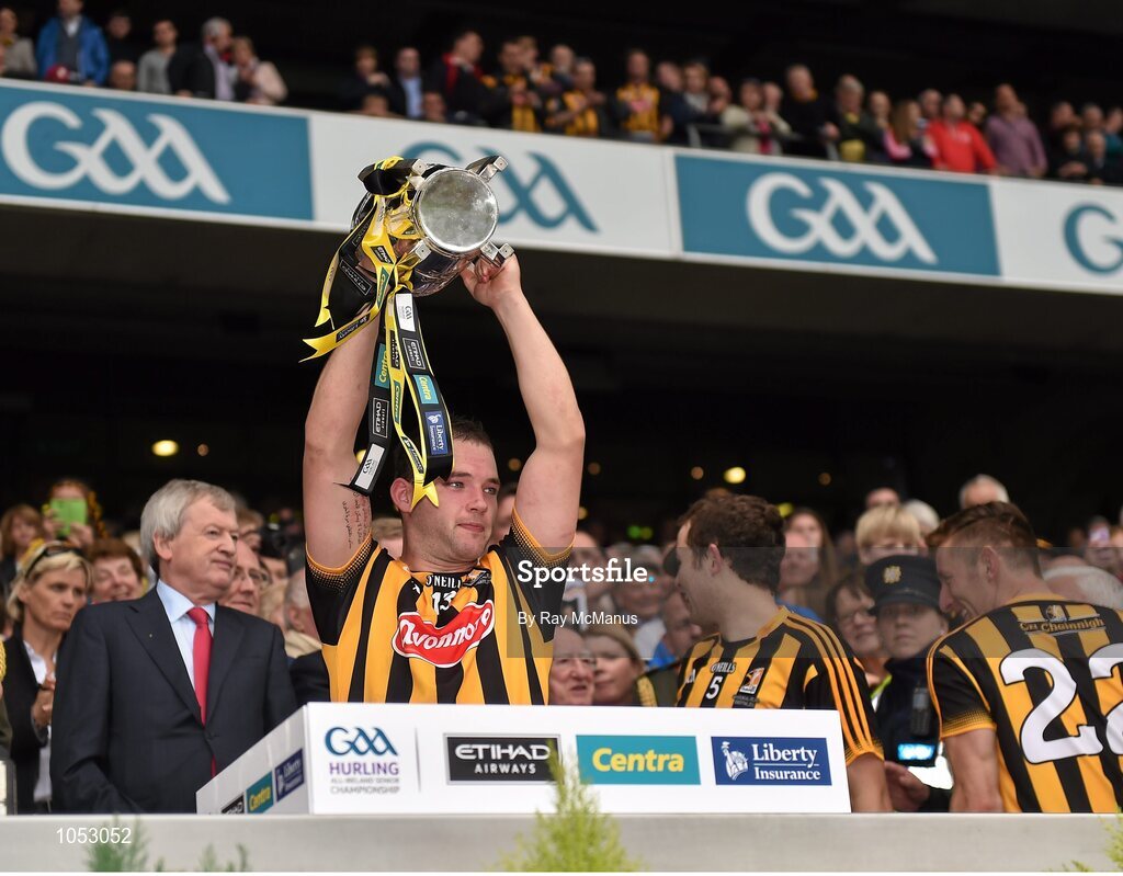 6 September 2015; Ger Aylward, Kilkenny, lifts the Liam MacCarthy cup. GAA Hurling All-Ireland Senior Championship Final, Kilkenny v Galway, Croke Park, Dublin. Picture credit: Ray McManus / SPORTSFILE