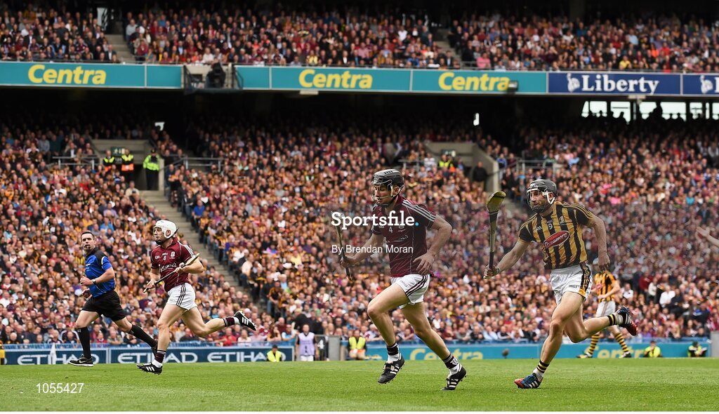 6 September 2015; Padraig Mannion, Galway, in action against Conor Fogarty, Kilkenny. GAA Hurling All-Ireland Senior Championship Final, Kilkenny v Galway, Croke Park, Dublin. Picture credit: Brendan Moran / SPORTSFILE