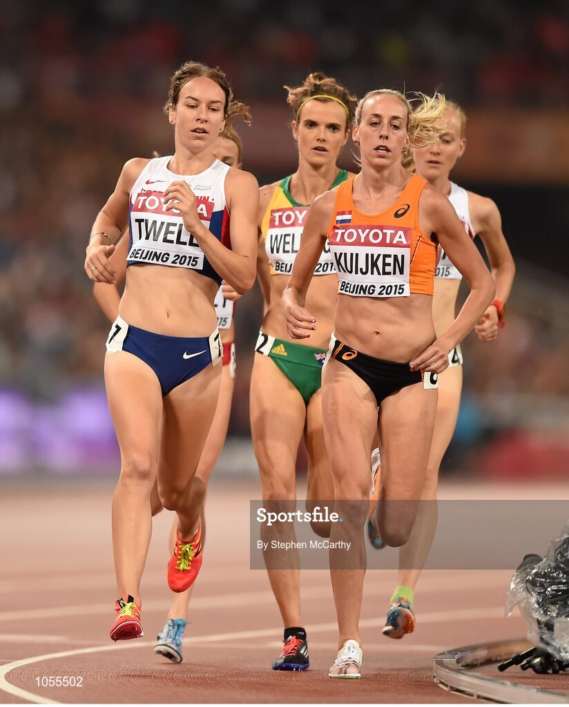 30 August 2015; Stephanie Twell of Great Britain, left, and Susan Kuijken of the Netherlands during the Women's 5000m final. IAAF World Athletics Championships Beijing 2015 - Day 9, National Stadium, Beijing, China. Picture credit: Stephen McCarthy / SPORTSFILE
