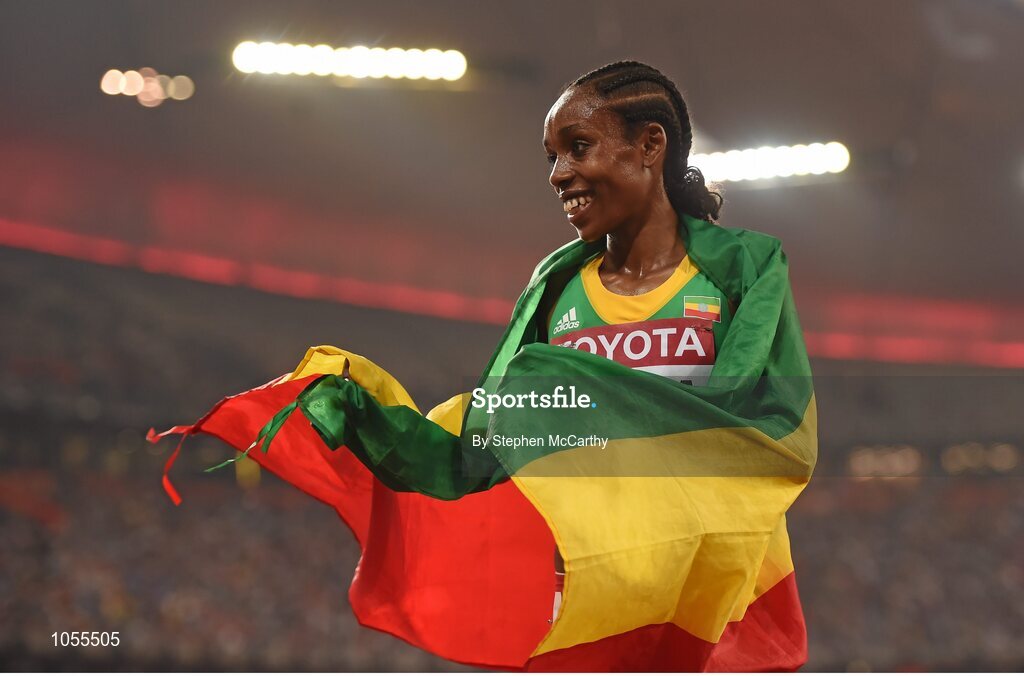 30 August 2015; Almaz Ayana of Ethiopia after winning the Women's 5000m final. IAAF World Athletics Championships Beijing 2015 - Day 9, National Stadium, Beijing, China. Picture credit: Stephen McCarthy / SPORTSFILE