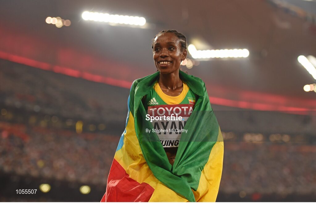 30 August 2015; Almaz Ayana of Ethiopia after winning the Women's 5000m final. IAAF World Athletics Championships Beijing 2015 - Day 9, National Stadium, Beijing, China. Picture credit: Stephen McCarthy / SPORTSFILE