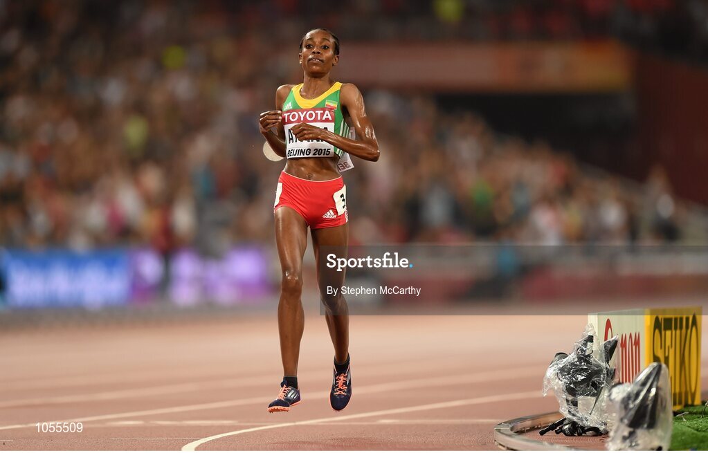 30 August 2015; Almaz Ayana of Ethiopia after winning the Women's 5000m final. IAAF World Athletics Championships Beijing 2015 - Day 9, National Stadium, Beijing, China. Picture credit: Stephen McCarthy / SPORTSFILE