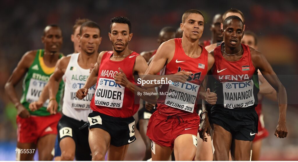 30 August 2015; Athletes, from left, Abdalaati Iguider of Morocco, Matthew Centrowitz of USA and Elijah Motonei Manangoi of Kenya during the final of the Men's 1500m event. IAAF World Athletics Championships Beijing 2015 - Day 9, National Stadium, Beijing, China. Picture credit: Stephen McCarthy / SPORTSFILE