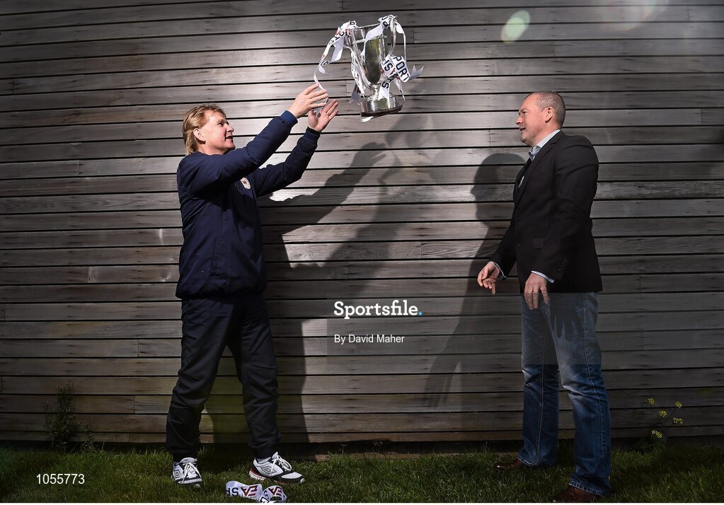 15 September 2015; Liam Buckley, left, St.Patrick's Athletic manager with Galway United manager Tommy Dunne, during the EA Sports Cup Final Media Day. FAI National Training Centre, Abbotstown, Co. Dublin. Picture credit: David Maher / SPORTSFILE