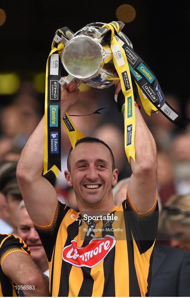 6 September 2015; Eoin Larkin, Kilkenny, lifts the Liam MacCarthy Cup. GAA Hurling All-Ireland Senior Championship Final, Kilkenny v Galway. Croke Park, Dublin. Picture credit: Stephen McCarthy / SPORTSFILE