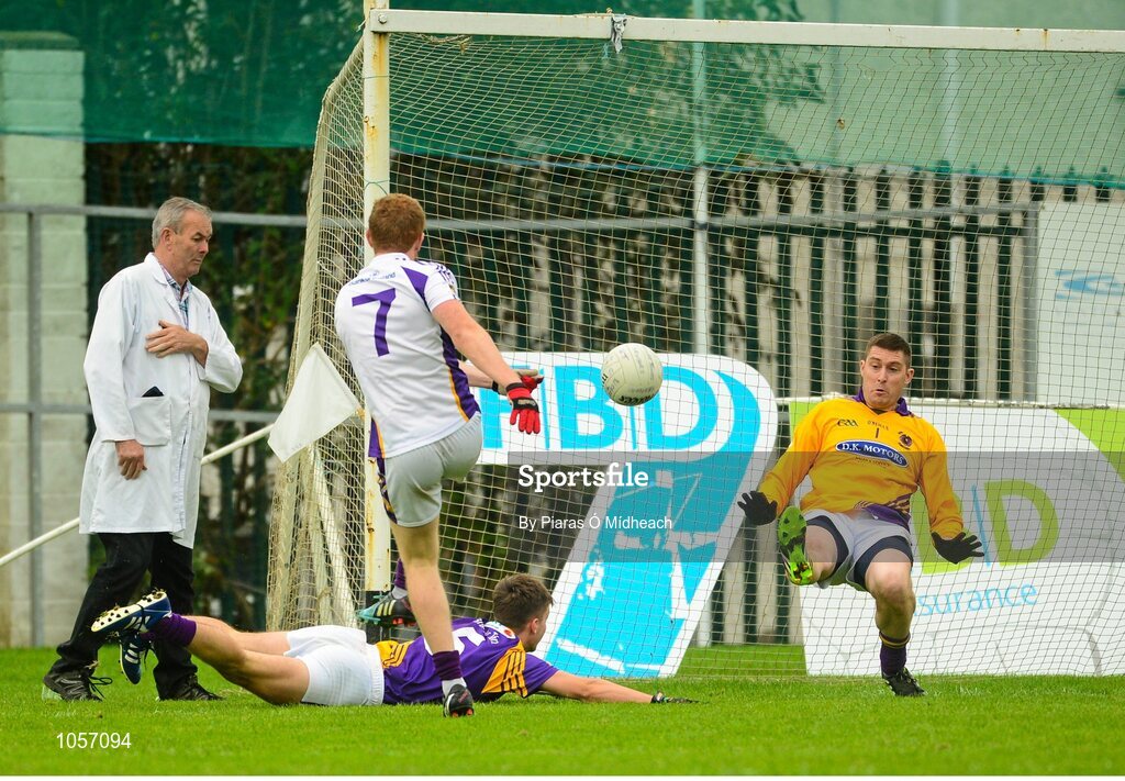 19 September 2015; Alan Egan, Kilmacud Crokes, scores a goal past Wolfe Tones goalkeeper David Nolan. FBD7s Senior All Ireland Football 7s at Kilmacud Crokes. Semi-Final, Kilmacud Crokes, Dublin v Wolfe Tones, Meath. Glenalbyn House, Stillorgan, Co. Dublin. Picture credit: Piaras Ó Mídheach / SPORTSFILE