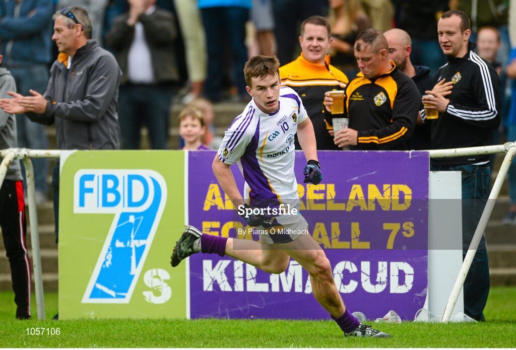 19 September 2015; Darragh Mullin, Kilmacud Crokes, celebrates after scoring a goal. FBD7s Senior All Ireland Football 7s at Kilmacud Crokes. Semi-Final, Kilmacud Crokes, Dublin v Wolfe Tones, Meath. Glenalbyn House, Stillorgan, Co. Dublin. Picture credit: Piaras Ó Mídheach / SPORTSFILE
