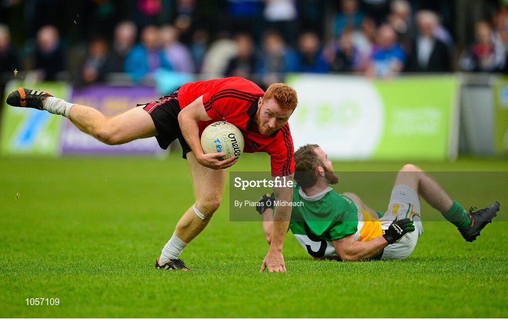 19 September 2015; Pauric Treanor, Truagh Gaels, in action against Gerry Carlin, An Charraig Mhór. FBD7s Senior All Ireland Football 7s at Kilmacud Crokes. Semi-Final, Truagh Gaels, Monaghan, v Carrickmore, Tyrone. Glenalbyn House, Stillorgan, Co. Dublin. Picture credit: Piaras Ó Mídheach / SPORTSFILE
