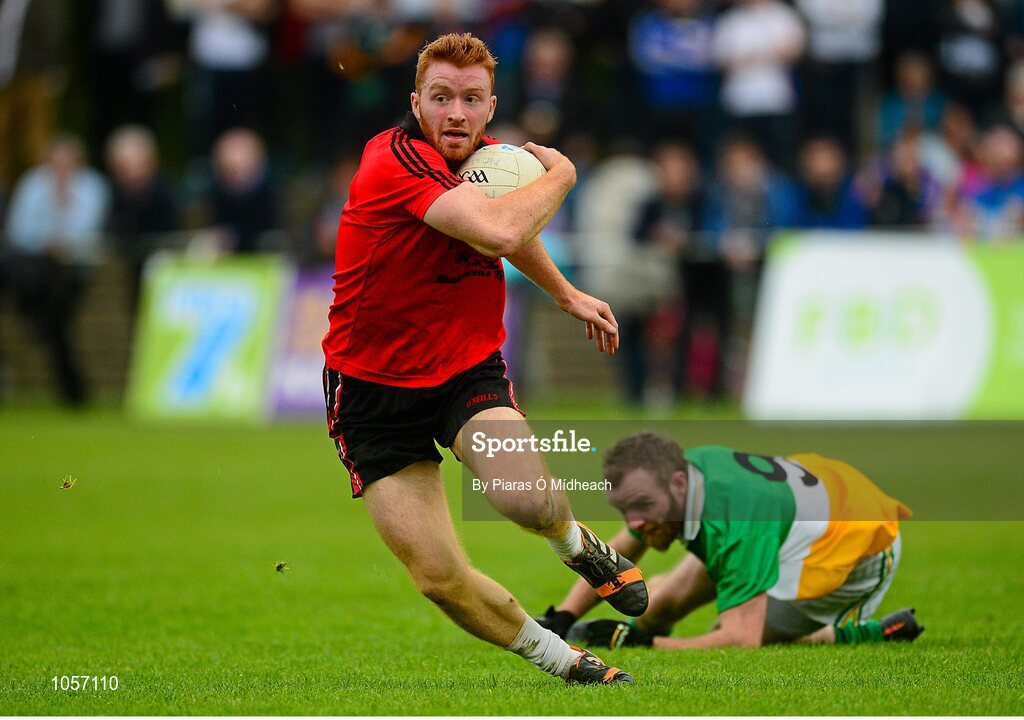 19 September 2015; Pauric Treanor, Truagh Gaels, gets past the challenge of Gerry Carlin, Carrickmore. FBD7s Senior All Ireland Football 7s at Kilmacud Crokes. Semi-Final, Truagh Gaels, Monaghan, v Carrickmore, Tyrone. Glenalbyn House, Stillorgan, Co. Dublin. Picture credit: Piaras Ó Mídheach / SPORTSFILE