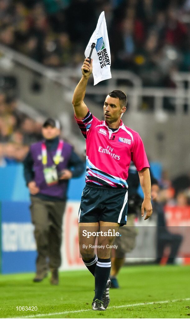 3 October 2015; Linesman Leighton Hodges. 2015 Rugby World Cup, Pool B, South Africa v Scotland, St James' Park, Newcastle, England. Picture credit: Ramsey Cardy / SPORTSFILE