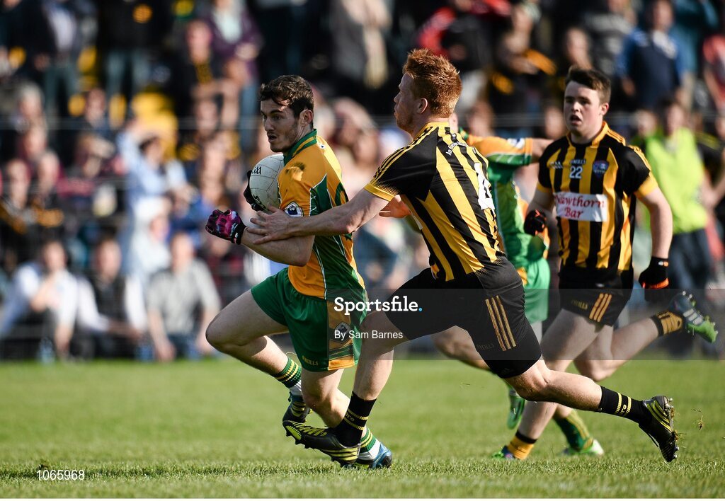 11 October 2015; Ian Burke, Corofin, is tackled by Cathal Duffy, Mountbellew-Moylough. Galway County Senior Football Championship Final, Mountbellew/Moylough v Corofin. Tuam Stadium, Tuam, Co. Galway. Picture credit: Sam Barnes / SPORTSFILE