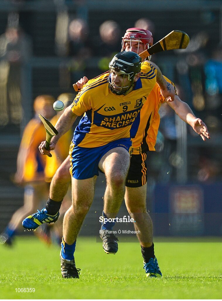11 October 2015; Brian Carey, Sixmilebridge, in action against Ian Galvin, Clonlara. Clare County Senior Hurling Championship Final, Clonlara v Sixmilebridge. Cusack Park, Ennis, Co. Clare. Picture credit: Piaras Ó Mídheach / SPORTSFILE