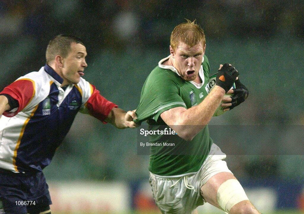 19 October 2003; Paul O'Connell, Ireland, in action against Du Preez Grobler, Namibia. 2003 Rugby World Cup, Pool A, Ireland v Namibia, Aussie Stadium, Sydney, New South Wales, Australia. Picture credit; Brendan Moran / SPORTSFILE *EDI*