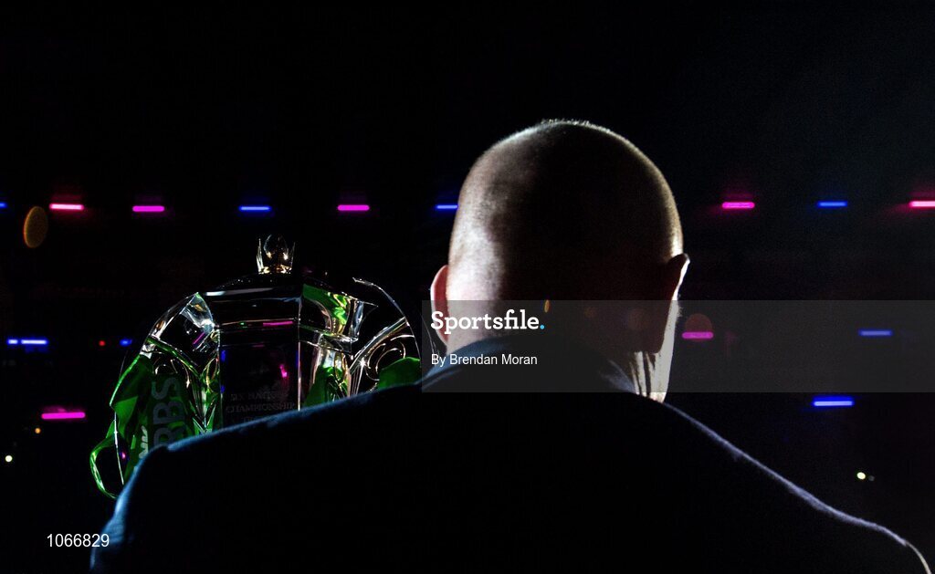 21 March 2015; Ireland captain Paul O'Connell with the RBS Six Nations Championship trophy after the game. RBS Six Nations Rugby Championship, Scotland v Ireland. BT Murrayfield Stadium, Edinburgh, Scotland. Picture credit: Brendan Moran / SPORTSFILE