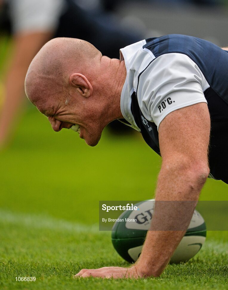 11 August 2015; Ireland's Paul O'Connell does push-ups during squad training. Ireland Rugby Squad Training. Carton House, Maynooth, Co. Kildare. Picture credit: Brendan Moran / SPORTSFILE