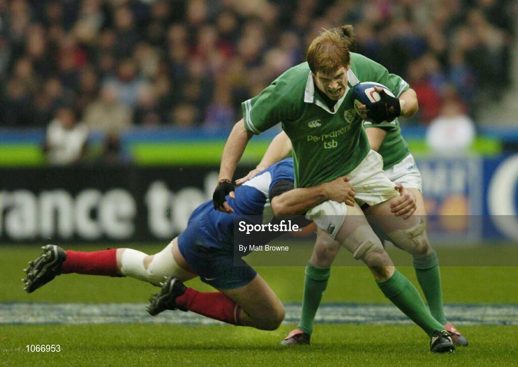 14 February 2004; Paul O'Connell, Ireland, is tackled by Fabien Pelous, France. RBS 6 Nations Championship 2003-2004, France v Ireland, Stade de France, St. Denis, Paris, France. Picture credit; Matt Browne / SPORTSFILE *EDI*