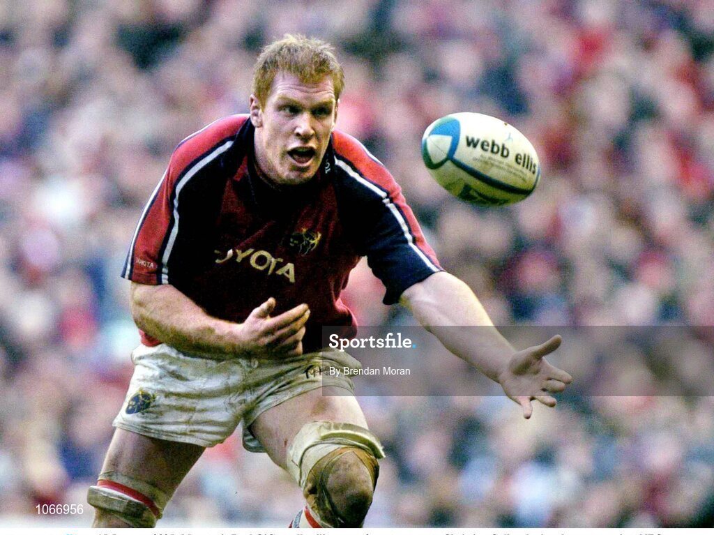 15 January 2005; Munster's Paul O'Connell spills a pass from team-mate Christian Cullen during the game against NEC Harlequins. Heineken European Cup 2004-2005, Round 6, Pool 4, NEC Harlequins v Munster, Twickenham, England. Picture credit; Brendan Moran / SPORTSFILE