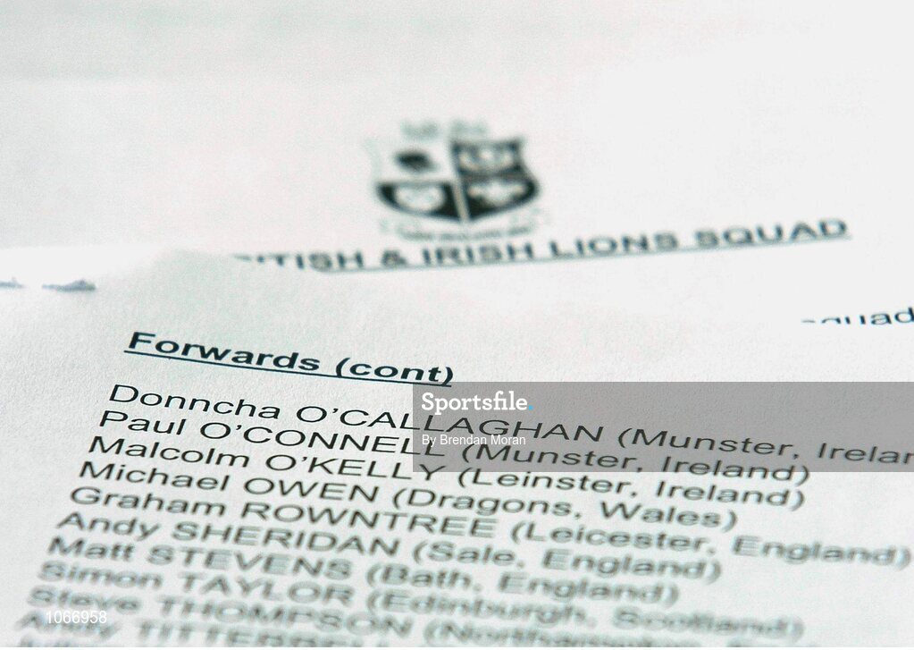 11 April 2005; A press release issued to announce the British & Irish Lions squad and captain. Included are Ireland locks Donncha O'Callaghan, Paul O'Connell and Malcolm O'Kelly along with 8 other Irish players. Hilton Hotel, Heathrow, London, England. Picture credit; Brendan Moran / SPORTSFILE