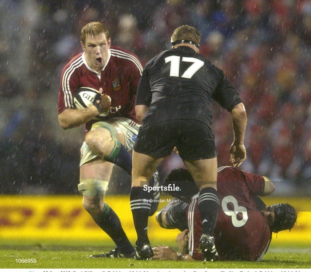 25 June 2005; Paul O'Connell, British and Irish Lions, in action against Greg Somerville, New Zealand. British and Irish Lions Tour to New Zealand 2005, 1st Test, New Zealand v British and Irish Lions, Jade Stadium, Christchurch, New Zealand. Picture credit; Brendan Moran / SPORTSFILE