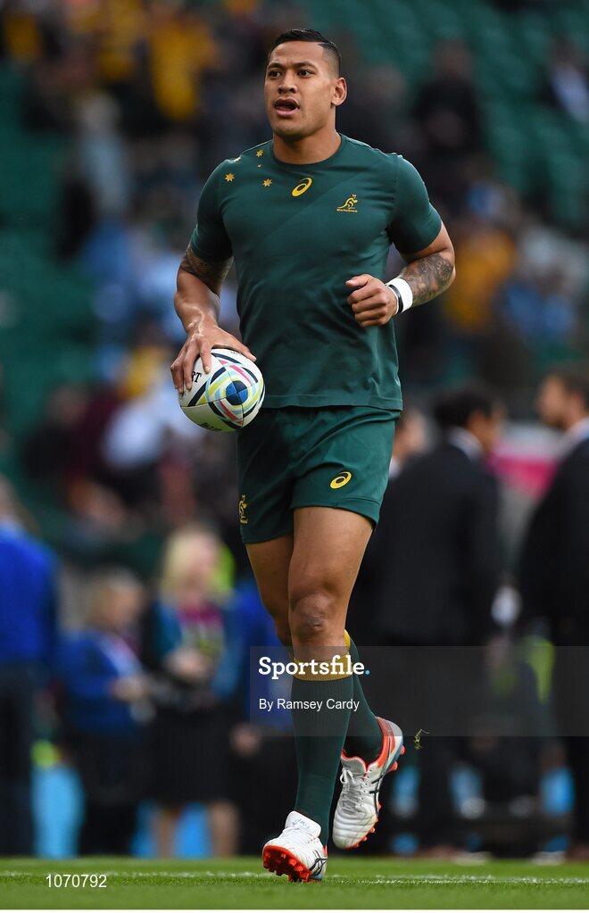 25 October 2015; Israel Folau, Australia, warms up ahead of the game. 2015 Rugby World Cup, Semi-Final, Argentina v Australia. Twickenham Stadium, Twickenham, London, England. Picture credit: Ramsey Cardy / SPORTSFILE