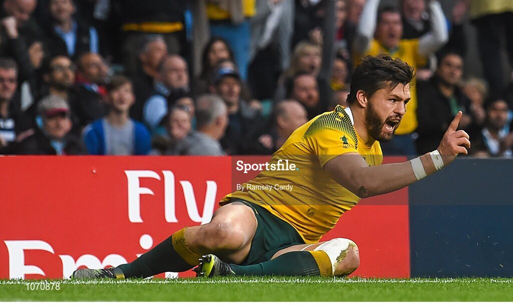 25 October 2015; Adam Ashley-Cooper, Australia, celebrates scoring his side's second try of the game. 2015 Rugby World Cup, Semi-Final, Argentina v Australia. Twickenham Stadium, Twickenham, London, England. Picture credit: Ramsey Cardy / SPORTSFILE