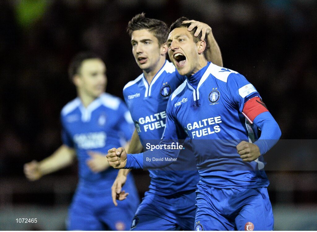 30 October 2015; Shane Duggan, right, Limerick FC, celebrates after scoring his side's first goal with team-mate Shaun Kelly. SSE Airtricity League Premier Division, Sligo Rovers v Limerick FC, The Showgrounds, Sligo. Picture credit: David Maher / SPORTSFILE